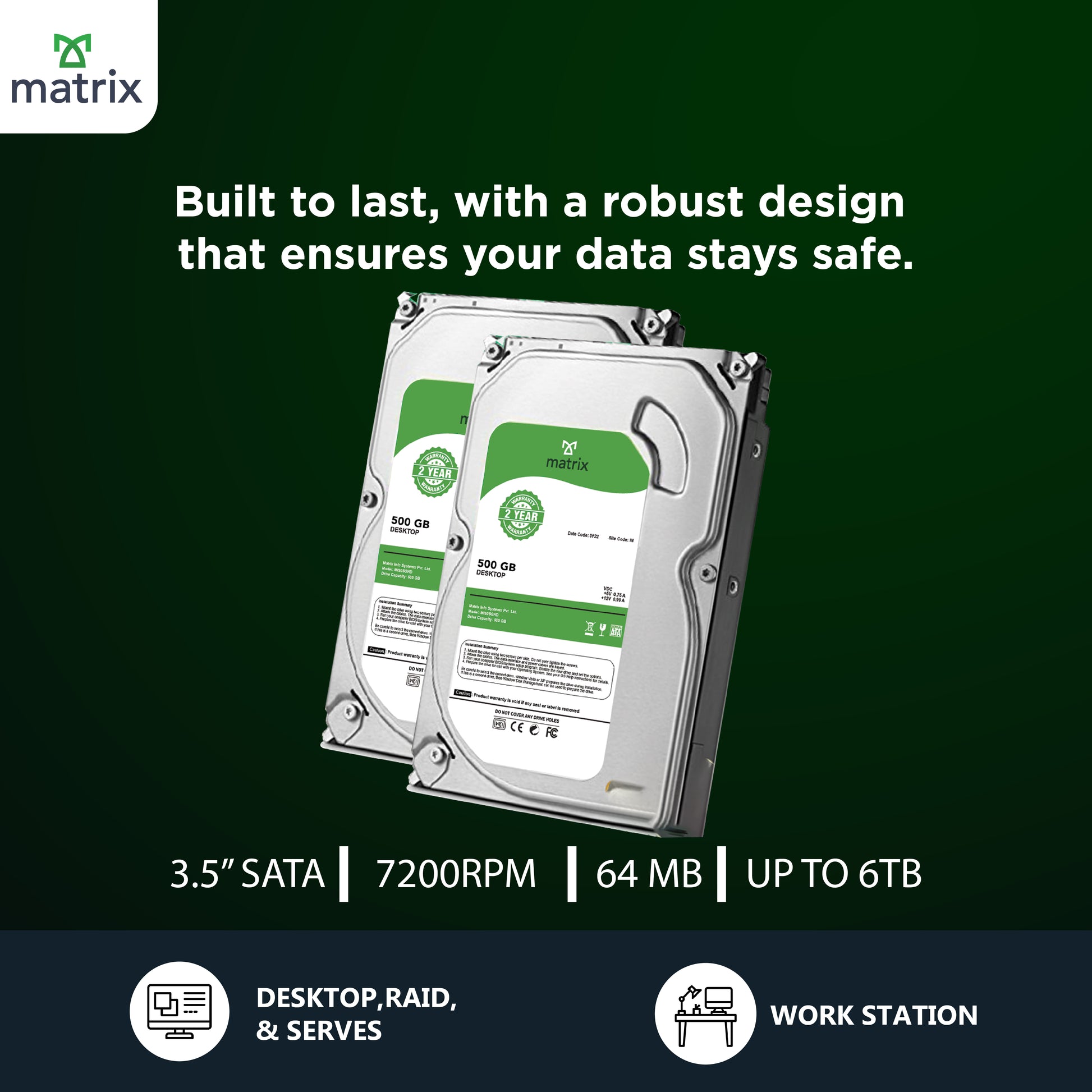 Matrix 500GB SATA Hard Disk Drive 3.5 Inch – High-Speed 7200RPM HDD for Desktop, CCTV