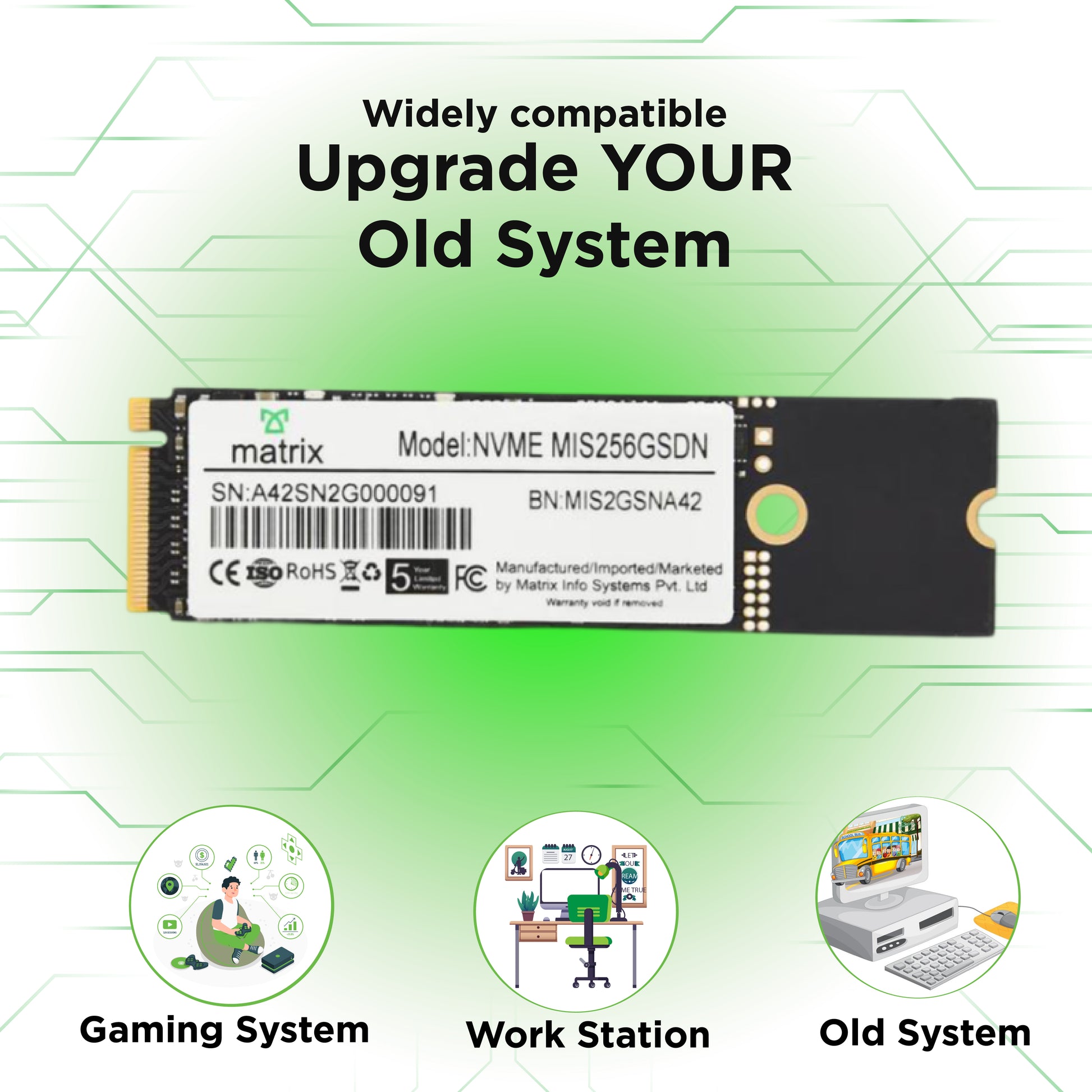 Unlock the full potential of your computer with the Matrix NVMe SSD. This SSD ensures lightning-fast data access, swift app launches, and rapid system boot times. Perfect for gamers and professionals, it combines advanced NVMe technology with high endurance for data reliability and long-lasting performance. Plus, its energy-efficient design extends battery life. Elevate your computing experience with the Matrix NVMe SSD – the ultimate upgrade for speed and reliability."